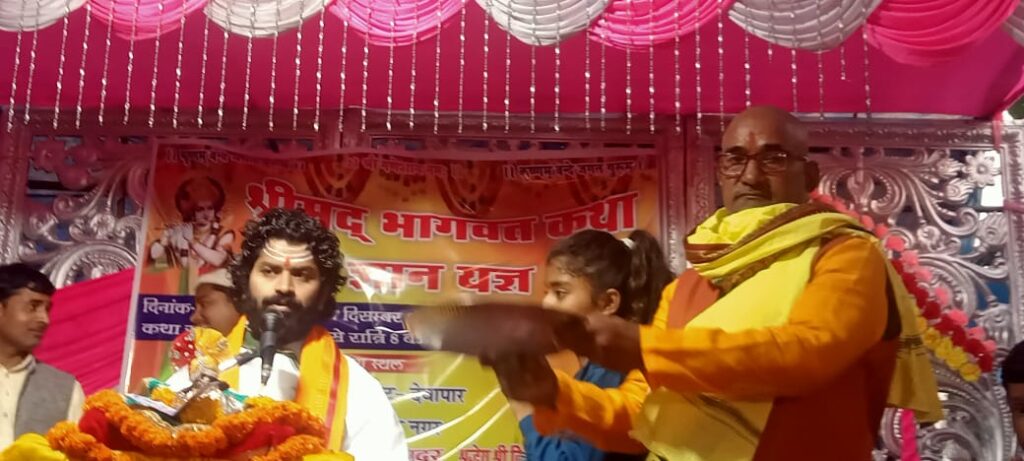 संतकबीरनगर। विकास खण्ड नाथनगर के ग्राम खिरिया में जयराम पाठक के द्वारा श्रीमद्भागवत कथा का कराया जा आयोजन।श्रीमद्भागवत कथा के छठवें दिन कथावाचक विद्यासागर भारद्वाज ने श्रीकृष्ण-रुक्मणी विवाह का प्रसंग सुनाया। कहा कि भगवान श्रीकृष्ण के साथ हमेशा देवी राधा का नाम आता है।