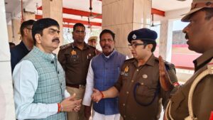 संत कबीर नगर। मंडलायुक्त बस्ती मंडल बस्ती अखिलेश सिंह व उप पुलिस महानिरीक्षक बस्ती परिक्षेत्र बस्ती संजीव त्यागी द्वारा जिलाधिकारी आलोक कुमार व पुलिस अधीक्षक संदीप कुमार मीना के साथ महाशिवरात्रि पर्व के दृष्टिगत तामेश्वरनाथ शिव मन्दिर/परिसर में शिवरात्री पर्व के सम्बन्ध में की जा रही तैयारियों, कानून व्यवस्था एवं मन्दिर में आने वाले श्रद्धालओं की सुरक्षा व्यवस्था व भीड़ प्रबन्धन हेतु की गई व्यवस्था आदि के संबंध में जानकारी लेते हुए संबंधित अधिकारियों को आवश्यक दिशा-निर्देश दिए गए। निरीक्षण के दौरान अधिकारीगण द्वारा जलाभिषेक के लिए लगने वाली लाइन की बैरिकेटिंग व रुट डायवर्जन आदि के बारे में जानकारी ली गयी।