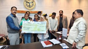 संत नगर कबीर। समाजशास्त्र कंपनी सेमरियावां, जिला संतकबीर नगर के दिवंगत पूर्वज स्व0 फूलचंद की पत्नी श्रीमती कुसुमलता की बीमा राशि 30 लाख रुपये, शिक्षा सहायता सहायक के रूप में बेटी साक्षी को 04 लाख रुपये और बेटी अंशिका को 04 लाख रुपये का बीमा चेक प्रदान किया गया। मृतक स्व0 फूलचंद के सहयोगियों को अपार्टमेंट मुख्यालय द्वारा 05 लाख रुपये की अनुग्रह राशि प्रदान की गई है। उल्लेख है कि उक्त नियम 38 लाख की याचिका का भुगतान एक्सिस बैंक द्वारा किया गया है।