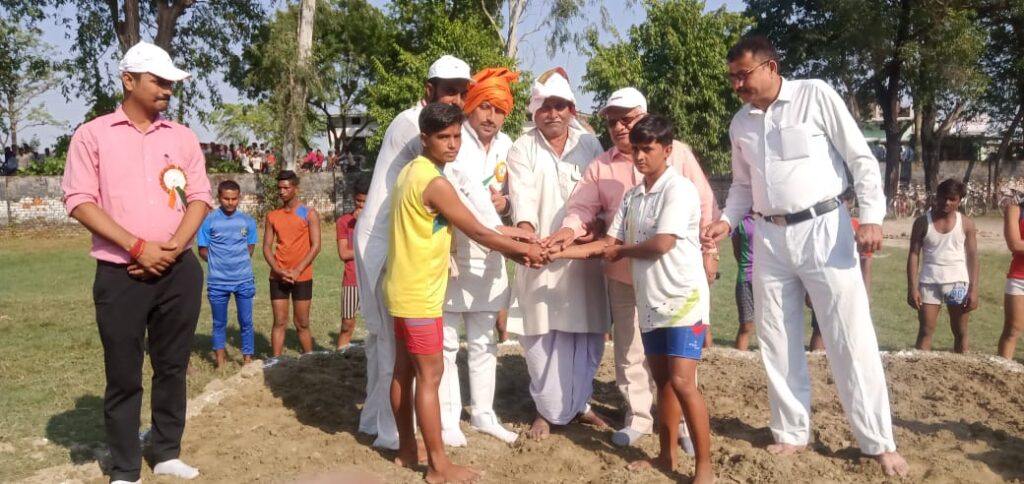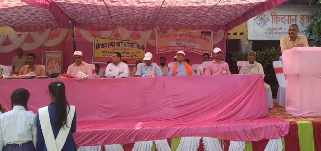 कुशीनगर।किसान इण्टर कालेज पिपरा बाजार में युवा एवं खेल विभाग द्वारा विशुनपुरा ब्लॉक का ग्रामीण खेल-कूद प्रतियोगिता का आयोजन किया गया।कार्यक्रम का शुभारंभ मुख्य अतिथि के रूप में पधारे विशुनपुरा ब्लॉक प्रमुख श्री विंध्यवासिनी श्रीवास्तव द्वारा माँ सरस्वती के चित्र पर पुष्पार्चन तथा दीप प्रज्वलित कर किया गया।
