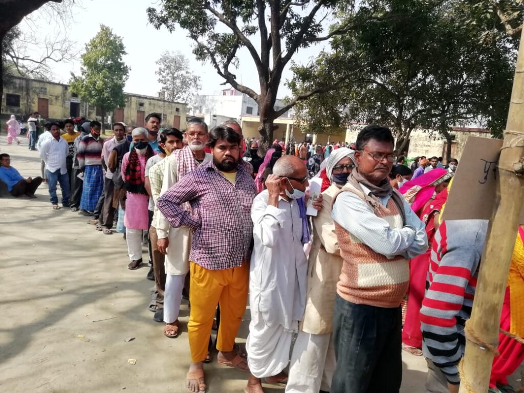 कुशीनगर । विधानसभा चुनाव के छठे चरण में गुरुवार को कुशीनगर जनपद के सातो विधानसभा सीटों पर करीब 54. 90 फीसदी मतदान हुआ। कोविड प्रोटोकॉल के कारण एक घंटे के विस्तार के बाद शाम छह बजे मतदान बंद हुआ। कुछ स्थानों पर ईवीएम में मामूली तकनीकी खराबी के साथ शांतिपूर्ण ढंग से संपन्न हुआ। सुबह मतदान धीमा रहाऔर दिन ढलने के साथ इसमे तेजी आई। शाम को जब पोलिंग बंद हुई तब तक 54. 90 प्रतिशत मतदान के साथ 91 प्रत्याशियों का भाग्य ईवीएम मे बंद गया। निर्वाचन कंट्रोल रूम से मिली जानकारी के मुताबिक जनपद के खड्डा विधानसभा 329 मे 55 फीसदी वोटरो ने वोट की चोट दिया, जबकि पडरौना विधानसभा 330 मे 56. 98 फीसदी मतदाताओं ने अपने मत का प्रयोग किया। इसी तरह से 331 तमकुहीराज विधानसभा मे 55 प्रतिशत फाजिलनगर 332 विधानसभा मे 55. 17 फीसदी, कुशीनगर 333 विधानसभा मे 56. 5 फीसदी, हाटा 334 विधानसभा मे 53. 13 प्रतिशत और रामकोला आरक्षित 335 विधानसभा मे 53. 2 फीसदी मतदाताओं ने अपने मताधिकार का प्रयोग करते वोट की चोट की है।