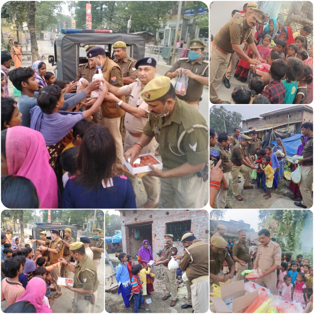 संतकबीरनगर।अपर पुलिस महानिदेशक गोरखपुर जोन, गोरखपुर अखिल कुमार पुलिस महानिरीक्षक बस्ती परिक्षेत्र, बस्ती राजेश मोदक के निर्देशन में पुलिस अधीक्षक डॉ0 कौस्तुभ द्वारा जनपद के समस्त पुलिस अधिकारियों / प्रभारी निरीक्षक / थाना प्रभारियों को दीपावली के त्यौहार को गरीब एवं असहाय लोगों के साथ समान रूप से हर्ष व उल्लास पूर्ण मनाए जाने के संबंध में निर्देशित किया गया है । जिसके क्रम मे को अपर पुलिस अधीक्षक संतकबीरनगर संतोष कुमार सिंह, क्षेत्राधिकारी खलीलाबाद अंशुमान मिश्रा द्वारा प्रभारी चौकी मगहर हरिनरायण दीक्षित के साथ कस्बा मगहर के गरीब एव असहाय लोगों के बीच पहुंचकर मिठाइयां ,फल- फूल, मिट्टी के दिए, मोमबत्ती इत्यादि व दीपावली के त्यौहार पर उपयोग होने वाली वस्तुओं को देकर उनके साथ दीपावली की खुशियों को मनाया गया । इसी क्रम में थानाध्यक्ष धर्मसिंहवा जितेन्द्र यादव व प्रभारी थानाध्यक्ष दुधारा / प्रभारी चौकी विनोद कुमार यादव द्वारा थाना क्षेत्र के गरीब एवं असहाय लोगों के बीच पहुंचकर मिठाइयां ,फल- फूल, मिट्टी के दिए, मोमबत्ती इत्यादि व दीपावली के त्यौहार पर उपयोग होने वाली वस्तुओं को देकर उनके साथ दीपावली की खुशियों को मनाया गया । सन्तकबीरनगर पुलिस के इस कार्य से सभी को बहुत ही खुशियां मिली सभी के द्वारा पुलिस के इस मानवीय कार्य को भूरी भूरी सराहना की गई ।