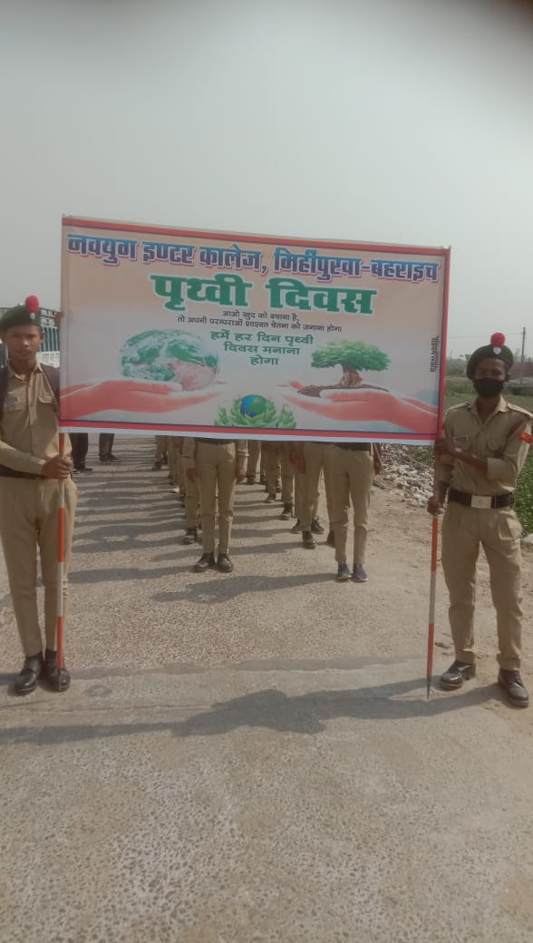 मिहींपुरवा/ बहराइच- विकासखंड मिहींपुरवा के अंतर्गत कस्बे में स्थापित नवयुग इंटर कॉलेज में संचालित एनसीसी कैडेट्सों ने शुक्रवार को स्वच्छ भारत अभियान के तहत पृथ्वी दिवस पर रैली का आयोजन किया। मिहींपुरवा कस्बे में एनसीसी कैडेट्स ने रैली निकालकर स्वच्छता का संदेश दिया तत्पश्चात सरयू बैराज के तट पर सफाई अभियान चलाया।